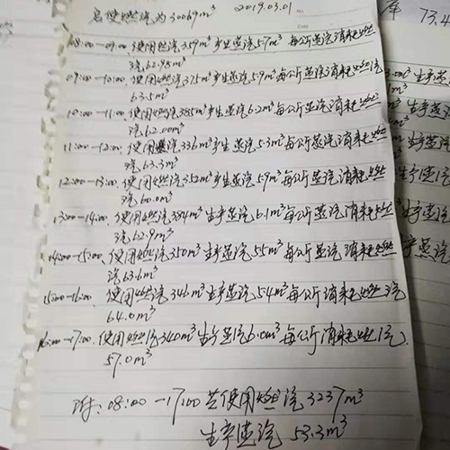 在客戶的見證下,進行嚴格地檢測,最終檢測結果為:WNS6-1.25-Q型號6噸燃氣蒸汽鍋爐滿負荷運行時,1噸蒸汽耗氣量是66.6m³,與其他廠家同型號燃氣鍋爐相比可節能30%,面對此檢測結果,客戶表示非常滿意。